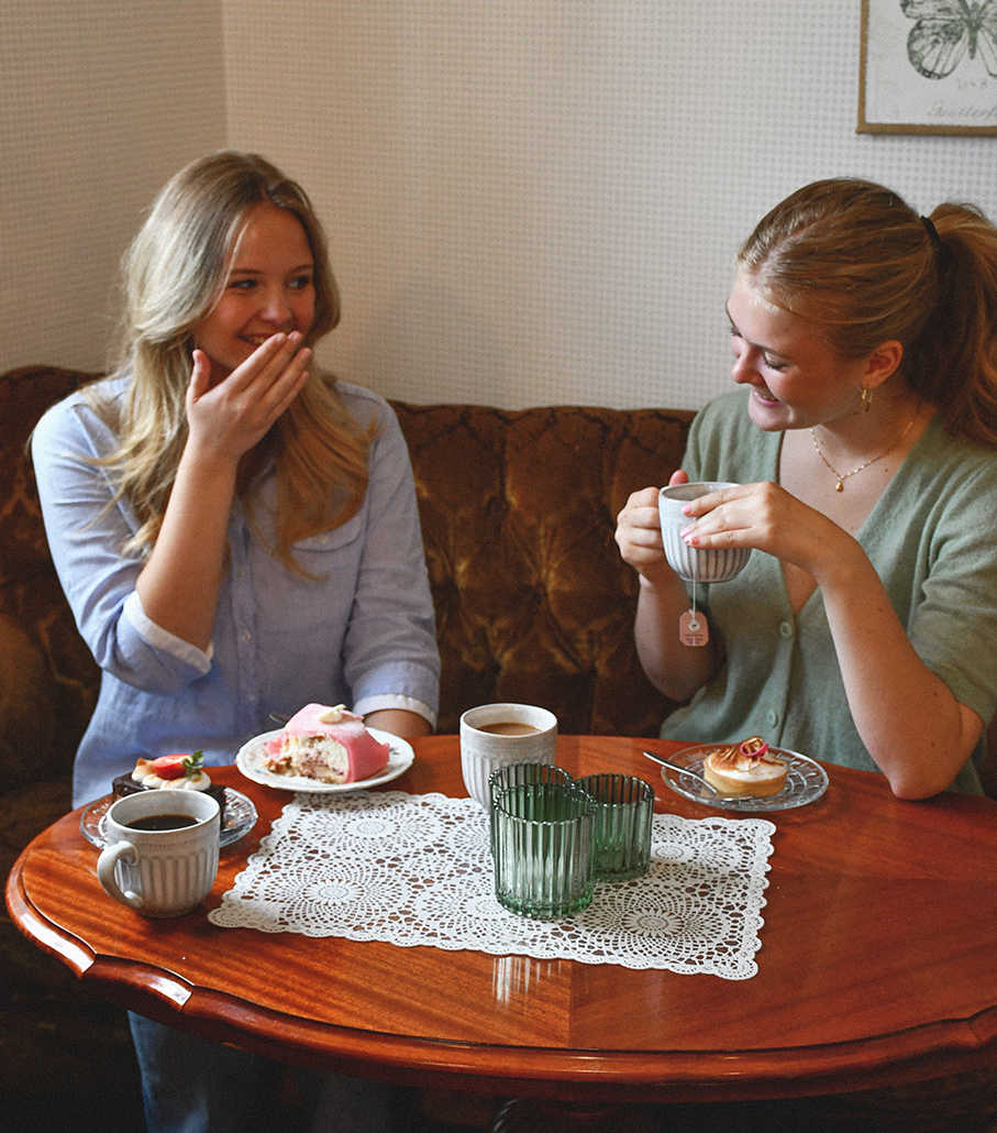 I anslutning till butiken hittar du vårt café. Vi serverar nybakat fika, kaffe och luncher. Här kan du ta en paus, njuta av lugnet och smakerna, eller bara sitta en stund med en kopp kaffe. Oavsett om du är på utflykt eller bara passerar förbi, du är varmt välkommen in.